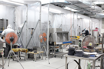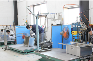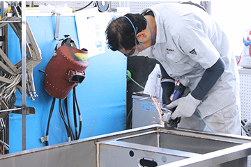 | 溶接 | ステンレスの板をつなぎ合わせます。 大規模な溶接から細かな部分の溶接まで、各ニーズに合わせた溶接機械を完備しております。 精密さが必要になる箇所はレーザー溶接を行います。 |