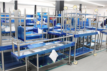 | 切断・曲げ加工 | ステンレスの板をカットして行きます。 コンピューターで管理された機器を用いて迅速かつ精密に切り出します。 曲げ加工が必要な商品はこの段階で湾曲させます。 |